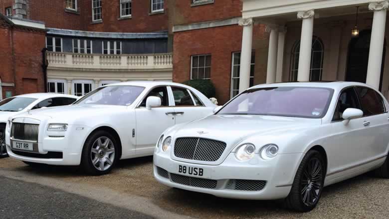The spacious air-conditioned 4-door Bentley Flying Spur comfortably accommodates up to 4 passengers, excluding your personal chauffeur. The large boot in the Bentley Flying Spur can accommodate 3 large pieces of luggage or a mix of 1 or 2 large + 2 or 3 smaller luggage items or bags; making it the ideal choice for airport transfers. The Bentley Flying Spur is equipped with a ‘state-of-the-art’ digital in-car sound system. Passengers can also adjust the climate settings, seat heating, ventilation and infotainment features from both the front and rear. The spacious interior of the Bentley Flying Spur ensures that all occupants enjoy generous legroom, making it the perfect wedding day transportation for both Bride & Groom, to and from the wedding venue. Sip champagne as you travel in your Bentley Flying Spur wedding car, decorated with ribbons & flowers.HIRE A BENTLEY OR A ROLLS ROYCE FOR YOUR SPECIAL NIGHT OUT LONDON, HERTS OR ESSEX