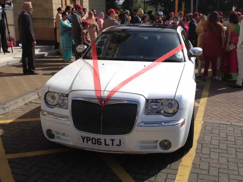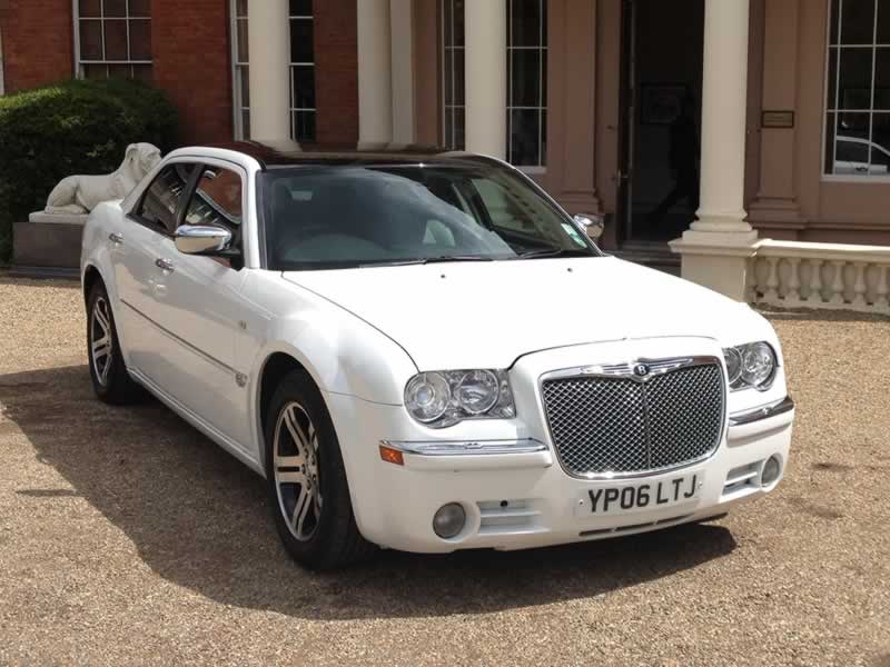 Limousines in London 300C Chrysler Saloon is styled to resemble a luxury Bentley. The Chrysler 300C is popular as a London wedding car. This impressive and powerful wedding car has bags of style, comfort and space for even the largest of wedding dresses. The Chrysler saloon truly ticks all the boxes!